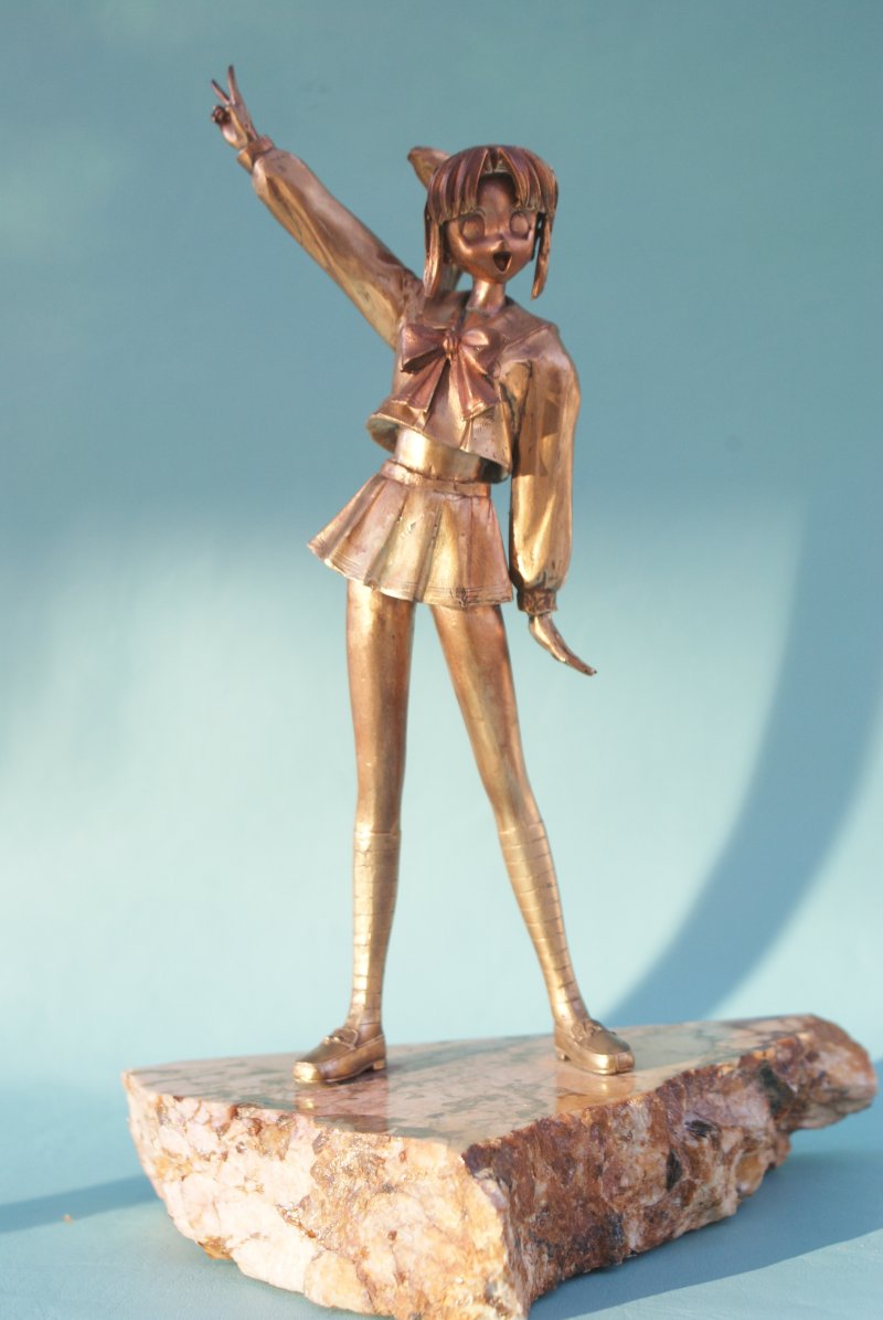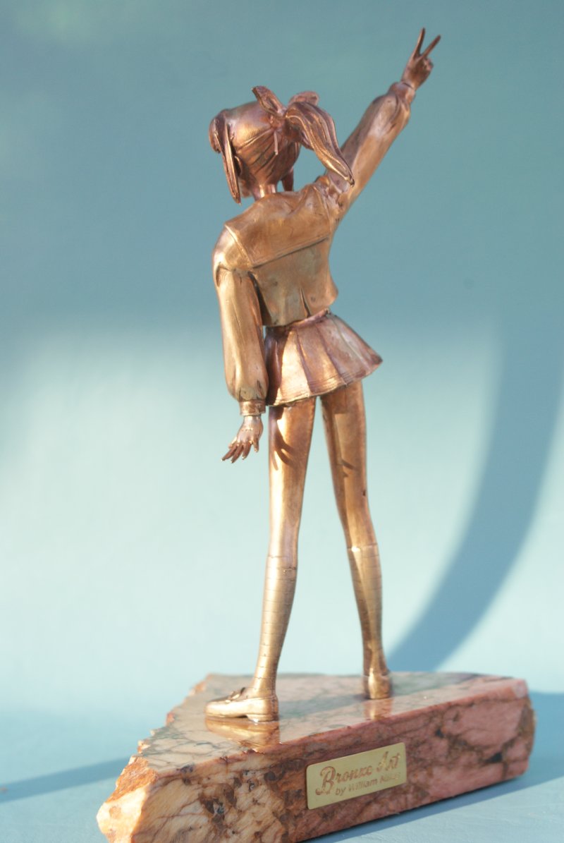 Photographs of Lemmy Miyauchi in bronze.