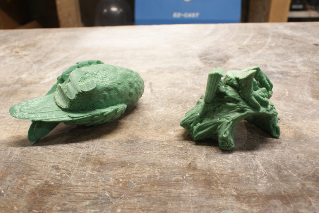 Two copies of the barn owl were made in wax. The mould was made from silicone rubber and produced fine detail.
