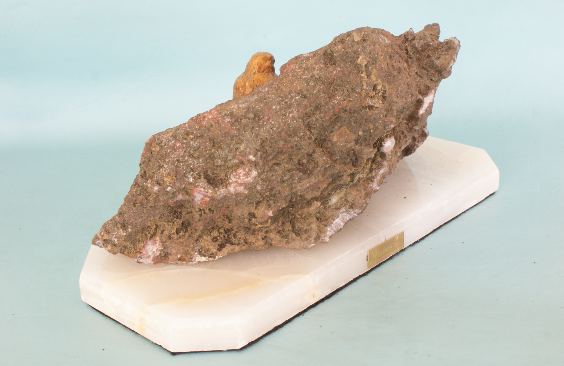 The vast majority of agate from Sidi Rahal exhibits two rim layers: pink-orange (outer) and red-brown (inner). This amethyst shows the characteristic red layer band around the edge. The red coloration can be attributed to inclusions of hematite (oxidized iron).
