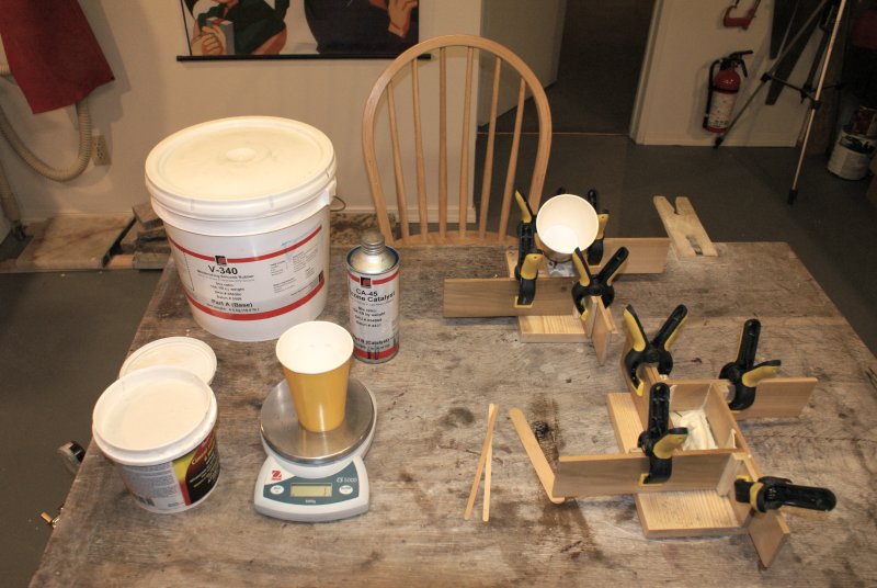 I use Freeman V340 silicon rubber. Expensive, but then all silicon rubber is. This rubber is mixed 10:1 ratio by weight with a catalyst. The rubber comes in a big 4.5 Kg pail. I transfer about 1 Kg into a smaller container for ease of pouring and then pour from this container into the cup. Once I know the weight I add the correct amount of catalyst. The measurement needs to be precise. If not accurate, the rubber sets too soft or too hard.